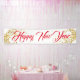 Cette bannière Holiday est présentée dans le style intérieur, Montrée en blanc avec le texte rouge "Bonne année" dans un script sophistiqué avec deux tourbillons d'étoiles à l'aspect or à chaque extrémité. Choisissez à l'intérieur ou à l'extérieur, avec ou sans grommets. Customisez ou achetez comme prévu.