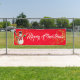 Cette bannière de Noël est présentée dans le style extérieur avec des grommets. Choisissez à l'intérieur ou à l'extérieur, avec ou sans grommets. Montré en rouge avec blanc "Joyeux Noël" avec Snowman et script fantaisie avec deux tourbillons d'étoiles à l'aspect or à chaque extrémité. Customisez ou achetez comme prévu.