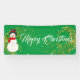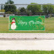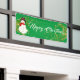 Cette bannière de Noël est présentée dans le style extérieur avec des grommets. Choisissez à l'intérieur ou à l'extérieur, avec ou sans grommets. Montré en vert avec blanc "Joyeux Noël" avec Snowman et script fantaisie avec deux tourbillons d'étoiles à l'aspect or à chaque extrémité. Customisez ou achetez comme prévu.