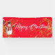 Cette bannière de Noël est présentée dans le style extérieur avec des grommets. Choisissez à l'intérieur ou à l'extérieur, avec ou sans grommets. Montré en rouge avec blanc "Joyeux Noël" avec Snowman et script fantaisie avec deux tourbillons d'étoiles à l'aspect or à chaque extrémité. Customisez ou achetez comme prévu.