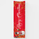 Cette bannière de Noël est présentée dans le style intérieur. Choisissez à l'intérieur ou à l'extérieur, avec ou sans grommets. Montré en rouge avec blanc "Joyeux Noël" avec Snowman et script fantaisie avec deux tourbillons d'étoiles à l'aspect or à chaque extrémité. Customisez ou achetez comme prévu.
