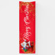 Cette bannière de Noël est présentée dans le style intérieur. Choisissez à l'intérieur ou à l'extérieur, avec ou sans grommets. Montré en rouge avec blanc "Joyeux Noël" avec Père Noël et script fantaisie avec deux tourbillons d'étoiles d'or à chaque extrémité. Customisez ou achetez comme prévu.