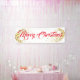 Cette bannière Holiday est montrée dans le style intérieur, Montré en blanc avec Rouge "Joyeux Noël" script fantaisie avec deux tourbillons d'étoiles à l'aspect or à chaque extrémité.