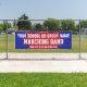 La bannière de défilé de la bande de marche personnalisée peut être modifiée avec votre nom d'école, le nom de la ville ou n'importe quel texte. Il peut être porté à l'avant de la bande lors d'une parade ou d'un événement, ou suspendu à tout événement ou compétition. Modifiez la couleur bleue de l'arrière - plan si vous le souhaitez. Une grosse starburst rouge est derrière l'attention d'obtenir du texte blanc. Choisissez une bannière de qualité intérieure ou extérieure.