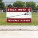 Bannière de crosse pour filles avec ligne de motivation et conception de bâton de laxisme sur arrière - plan marron. Modifiez le texte pour customiser pour votre événement de lacrosse ou d'équipe, bannière de jour de jeu, essais de nuit ou d'équipe senior.