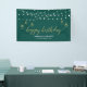 Cette conception de bannière d'événement comprend des guirlandes lumineuses géométriques dorées élégantes et une typographie "Joyeux Anniversaire" sur un fond vert émeraude. Cette bannière de félicitations est la décoration parfaite pour les événements modernes. Vous pouvez personnaliser le nom et le texte en bas de la bannière pour vos événements.