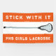 Bandeau de crosse motivationnelle avec design unique de bâton de lessive pour filles sur arrière - plan orange. Modifiez le texte pour customiser pour votre événement de lacrosse ou d'équipe, le jour du jeu, la soirée senior de l'école ou les essais en équipe.