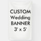 Pour obtenir la gamme complète et extensible de modèles de produits mariages personnalisables, visitez le site http://www.personalizedweddingessentials.com. Bannière personnalisée mariage 3' x 5', d'un bout à l'autre imprimé couleur vive, les bords sont ourlés puis soudés thermiquement pour une finition propre et nette. Disponible en intérieur, extérieur et extérieur avec des grommets métalliques. 4 options de taille. Les articles de première nécessité et cadeaux personnalisables et personnalisables sont répertoriés pour leur utilisation dans les célébrations liées au mariage et au mariage. Économie de rabais sur les achats multiples (achat en vrac) sur de nombreux articles.