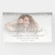 Parties scintillant d'argent Script photo 2024 Graduation. Une fausse bordure de parties scintillant est en haut et les félicitations à notre Grad est dans un script élégant avec des swashes. Personnalisez facilement le texte selon vos besoins et remplacez l'exemple d'image par le vôtre.