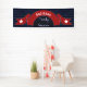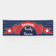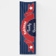 Célébrez votre prochaine réunion de famille avec cette bannière faite sur commande rouge, blanche et bleue élégante. Comporte un ruban rouge avec deux étoiles blanches. Ajoutez votre nom d'événement, nom de famille, nom de la société ou tout autre texte. Perfectionnez pour la semaine rouge de ruban, gagnants de récompense, pique-niques de société, Jour de la Déclaration d'Indépendance, 4 juillet, Jour du Souvenir, maison de Welocome et d'autres événements.