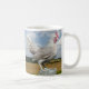 Photograph of a dutch bantam hen standing on a fence post. Design repeated on both sides of mug. Mug style, size, and colour are customizable.