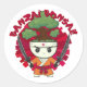 A cute bonsai character with a fierce expression holds two swords, wearing an orange martial arts outfit and a headband with a red symbol. Its head is stylized as a bonsai tree, with vibrant green foliage, set against a dynamic red background and the words "BANZAI BONSAI!" above.