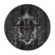 Kneeling skeletons bow before the Prince of Darkness in this Headbangers black metal dream (or nightmare) iconic crest. Black Baphomet Pentagram symbolic to Black Heavy Metal music genre.