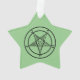 Baphomet Pentagram Ornament. This red, star shaped Christmas ornament featuring a baphomet pentagram is perfect for sprucing up the Christmas or winter holiday tree! Give as a gift to the goth, horror fan, satanist, occultist or witch in your life as a holiday present. The ornament is star shaped and red on one side and green on the other with the Baphomet Pentagram in black on each side.