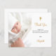 Un carte de remerciements de baptême minimaliste blanc et faux or. Personnalisez et ajoutez votre photo de l'enfant, merci note et nom. Non sexiste. Retour : icônes de médias sociaux, votre propre code qr à votre compte Instagram ou site Web afin que vos invités puissent regarder plus de photos. Cette carte est également disponible dans notre magasin sans icônes de médias sociaux.