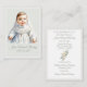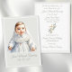 Une carte simple et élégante pour le baptême d'un bébé, avec une douce illustration d'un petit personnage dans sa robe baptismale sur un arrière - plan bleu doux. L'illustration est entièrement personnalisable et peut facilement être remplacée par une photo de votre choix. Ces cartes font de belles faveurs de baptême et de mémoire sincère pour vos invités.