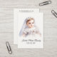 Une carte simple et élégante pour le baptême d'une petite fille, illustrant une jolie illustration d'une petite fille dans sa robe baptismale. L'illustration est entièrement personnalisable et peut facilement être remplacée par une photo de votre choix. Ces cartes font de belles faveurs de baptême et des souvenirs sincères pour vos invités.