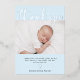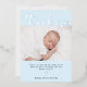 Ce bleu clair simple et élégant avec feuille d'argent Baptême ou carte de remerciements de Christening comprend deux photos de votre bébé, avec élégante typographie de scénario de feuille d'argent moderne et une croix d'argent assortie.