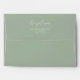 Ces enveloppes simples comportent le mot "Baptême" en blanc sur un arrière - plan vert sage. L'enveloppe s'ouvre pour révéler une élégante crête aquarelle avec croix dans les tons d'un vert assorti. Utilisez les champs modèle pour ajouter votre adresse de retour personnalisée. Un choix classique et minimal. Pour voir la suite correspondante, visitez www.zazzle.com/dotellabelle