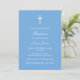 Baptême traditionnel bleu élégant Invitation, s'il vous plaît personnaliser comme souhaité, en utilisant le modèle de personnalisation en ligne avant de commander. L'invitation présente à la fois la croix et le texte élégant et élégant sur un agréable arrière - plan bleu doux.