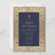 Baptism 1st Birthday Floral Gold Navy Blue Elegant Invitation