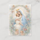 This exquisite invitation features a tender watercolor vignette of the Blessed Virgin Mary holding the Christ Child, surrounded by soft florals and cherubic angels in a luminous vintage style. The serene composition draws the eye upward in quiet reverence, making it especially fitting for the sacred occasion of Holy Baptism.