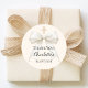 Baptism bow ivory white pearls cross thank you classic round sticker