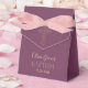 This beautiful and elegant baptism or christening favour box features a gold floral cross as well as the word "Baptism" in a trendy gold font. The background colour, ribbon colour, and name/date text can be customized to your liking for your special religious occasion.