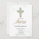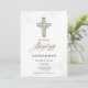 Baptism Christening Greenery Cross Elegant Script Invitation