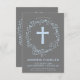 This modern Baptism or Christening invite features an elegant watercolor style blue floral wreath as well as a blue cross. Ideal for a baby boy's religious celebration, it can be customized with your child's name and the event details.