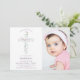 This baptism, christening photo invitation features a picture area as well as an intricate floral cross above your details about your special religious occasion.