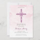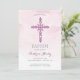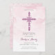 This beautiful and trendy baptism or christening invitation features a watercolor style pink background with an intricate illustrated purple cross and the word "baptism" written in a stylish font. The background can be removed and customized to a colour of your choice. The text can also be personalized for your special religious occasion.