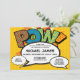 A fun, cool and trendy gender neutral comic book inspired baptism, christening invitation that puts the wham, zap, pow into your superhero's celebration event. The reverse features a matching comic book polka dot pattern and speech bubble for extra event details and address. Designed by Thisisnotme©