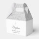 Elegant baptism or christening favour box featuring silver stardust with your event details set in chic silver typography. You can personalize with your own thank you message on the reverse. A perfect way to say thank you to your guests! Designed by Thisisnotme©