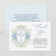 Thank You Baptism/Christening Card. This design features a watercolor illustration of greenery Crest, blue Cross and blue ribbons. You can adjust text according to your requirements.