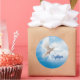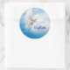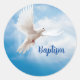 This large round sticker is shown with a baptism dove print.