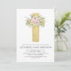 Daughter's Dusty Pink Rose and Sage Green Floral and Eucalyptus - Gold Foil Cross Botanical Greenery Watercolor Christian Religious Baptism Invitations.