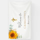 Welcome to an elegant baptism, gender neutral. A chic white background. Decorated with a watercolored sunflower and green eucalyptus leaves, sprigs, greenery, faux gold leaves. A faux gold cross. Personalize and add the name of the child