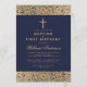 Baptism First Birthday Navy Blue Gold Roses Boy Invitation