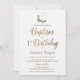 Baptism first Birthday Photo Wreath Gold Cross Invitation