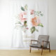 Baptism Girl Backdrop - Blush Pink Flowers Cross Tapestry