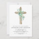 Sage Green Girl's Eucalyptus and Wooden Cross Botanical Greenery Watercolor Christian Religious Baptism Invitations.