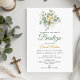 Invita a tus seres queridos a celebrar el hito religioso de tu bebé con esta exquisita invitación de bautizo. Decorada con hojas verdes y una cruz dorada, esta invitación combina perfectamente la ternura con la elegancia.
