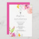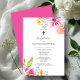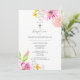 Baptism Invitation Pink Watercolor Flowers