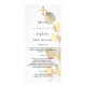Baptism menu card. Personalize and add a name, date and the menu. White background, black text. Decorated with a large golden eucalyptus stem and a faux gold cross.