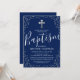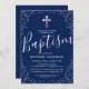 Baptism Navy Blue Silver Glitter Christening Invitation