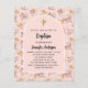 An arch frame on a pattern of pampas grass and pink flowers and a golden cross. Personalize and add a name and details.