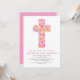 Baptism Pastel Floral Pink Rose Cross Invitation