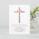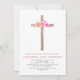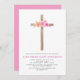 Baptism Pastel Floral Pink Rose Cross Invitation