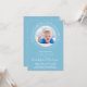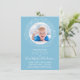 This elegant boy's 4.5" x 6.25" Baptism or Christening photo invitation features a white floral pattern with the word "blessed" encircling a picture area. The background is light blue and the word "baptism" is in a stylish, modern font. You can easily customized the photo and text to your liking for your boy's special religious occasion.